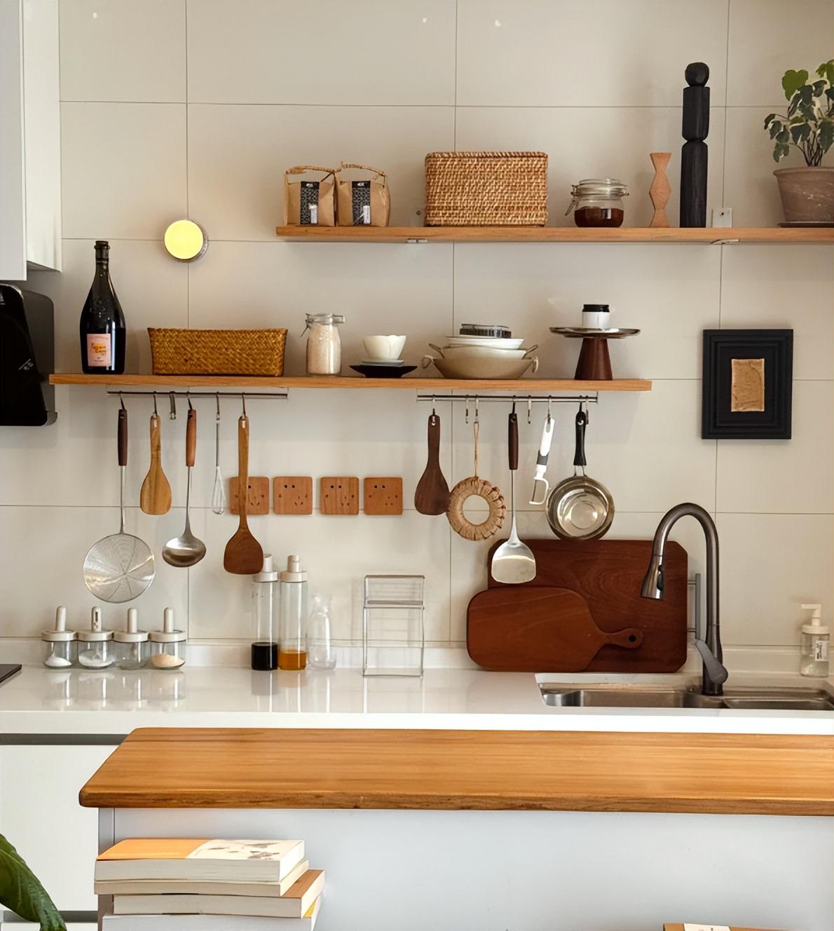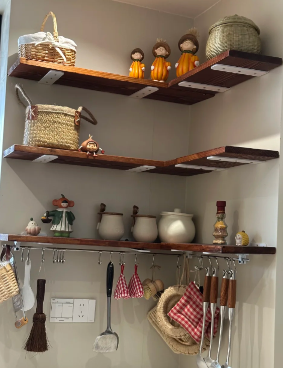 很多家庭装修,厨房没有做吊柜,而是做一层层的层板。